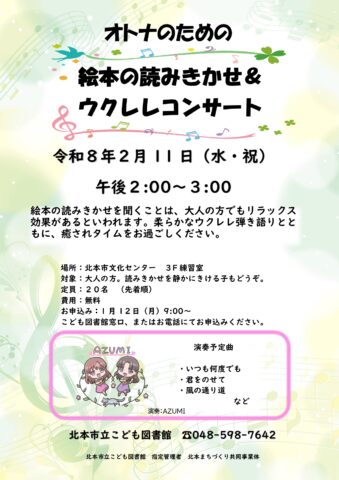 | 主催者 | 北本市立こども図書館指定管理者北本まちづくり共同事業体 |