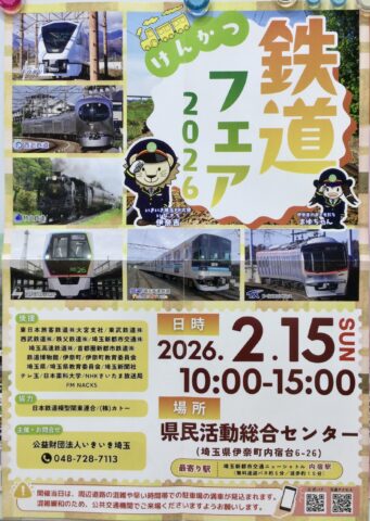 けんかつ鉄道フェア🚃 北本市近隣の伊奈町の情報です! 「けんかつ鉄道フェア2026」 【日時】2月15日(日) 10:00〜15:00 【場所】県民活動総合センター(埼玉県伊奈町内宿台6−26) 家族で楽しめる鉄道フェアに行ってみよう♪